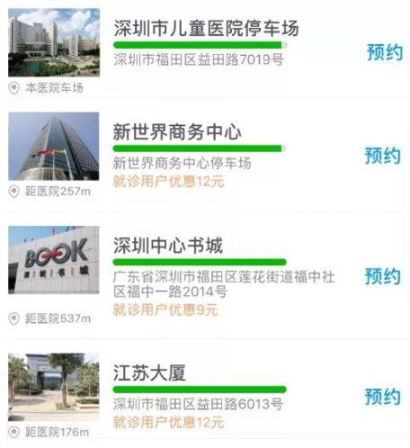 深圳市儿童医院停车场、深圳中心城书城停车场、新世界中心停车场、江苏大厦停车场