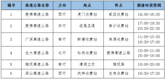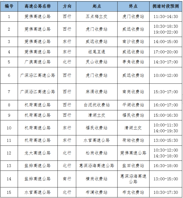 具体来看主要高速公路离深拥堵时段预测,如果可以,避开这些时间: