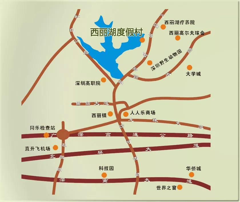 西丽湖度假村位于南山区西丽湖畔。拥有歌舞厅、高尔夫球场、钓鱼中心、农家乐等休闲设施,湖畔、村内亭、廊、塔、寺各具特色。登上麒麟山,西丽湖美景尽收眼底。