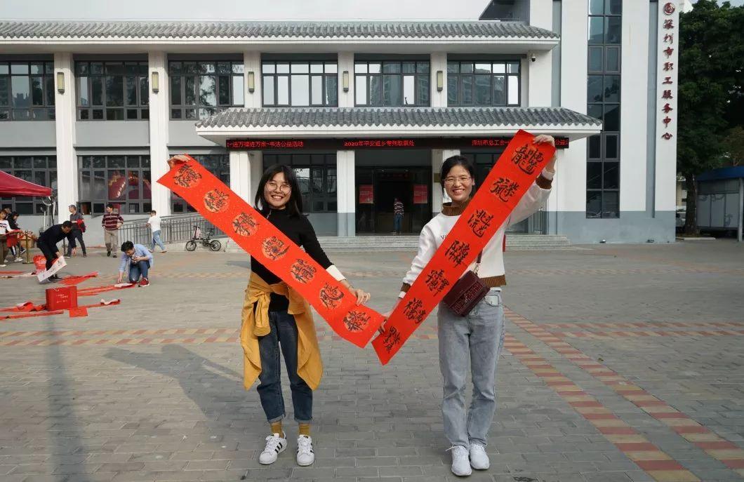 2020年1月11日,两名女孩儿领完车票后又排队领了春联,要把春联带回家送给爸爸妈妈。
