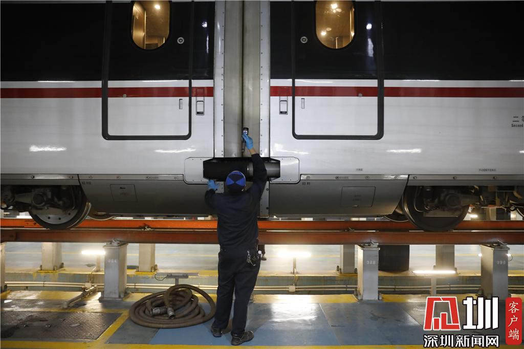 见圳客户端·深圳新闻网2020年1月15日讯(见圳客户端、深圳新闻网记者 涂胜 杨浩翰 陈智妍 韩翔 )2020年春运已经开始,南国高铁“万箭齐发”,满载着旅客回家的期盼与乡愁,驶向祖国的五湖四海。1月14日深夜,深圳新闻网记者探访了地处“特区”的深圳动车运用所,这里的工作人员正不分昼夜地工作,全力保障春运安全有序运行。