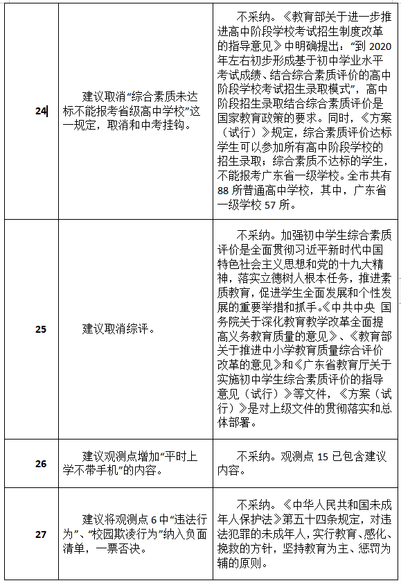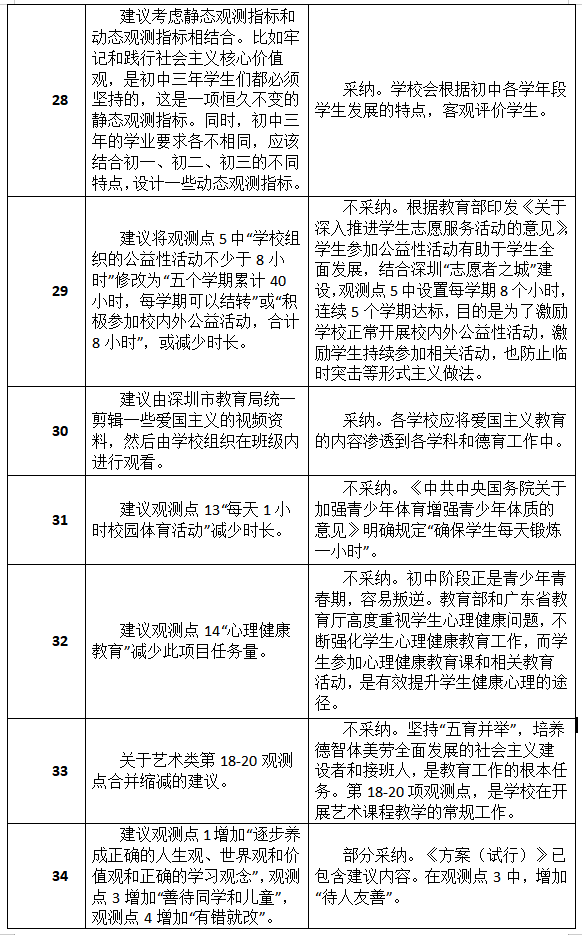 原标题:最新进展!深圳初中综评新方案征集到34类建议,其中19类被采纳或部分采纳