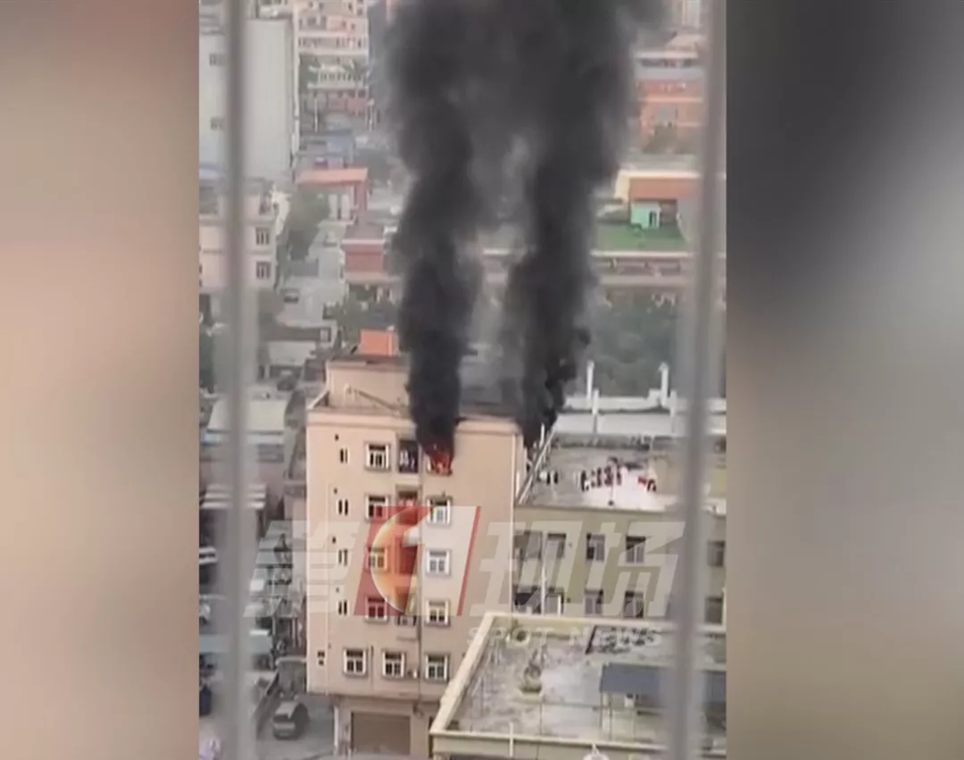 松岗一居民楼突发火灾!现场黑烟直冲上天,玻璃爆裂直往下掉
