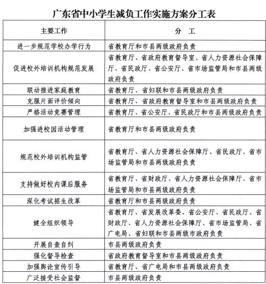 见圳客户端·深圳新闻网2020年1月17日讯 记者从“广东教育”微信公众号获悉,近日,省教育厅等九部门印发了《广东省中小学生减负工作实施方案》(下简称《实施方案》),提出27条具体举措,进一步规范学校办学行为、促进校外培训机构规范发展、联动推进家庭教育、强化政府监督管理、加强组织保障。《实施方案》自2020年3月1日起实施,有效期5年。