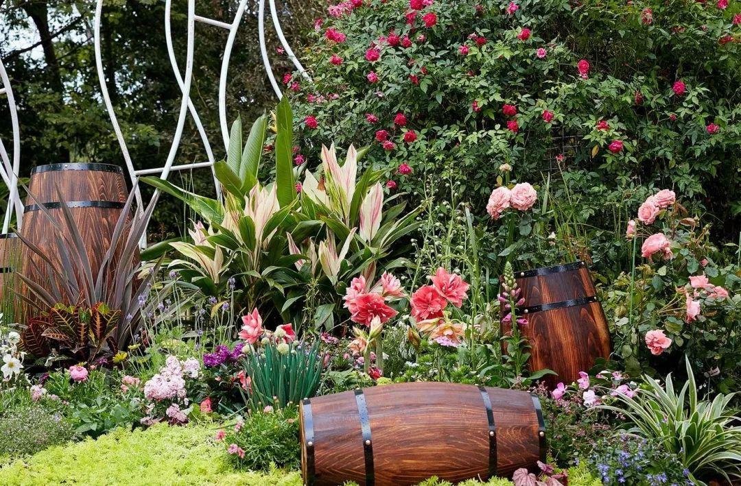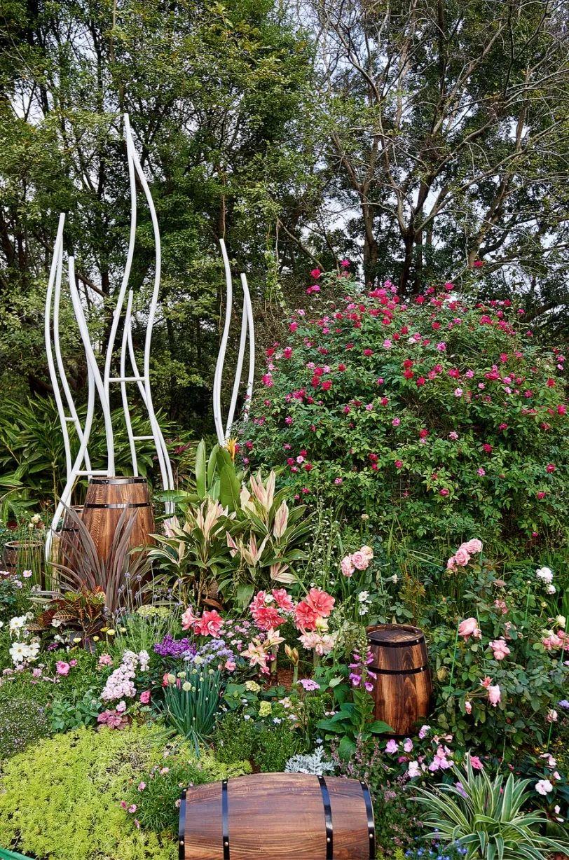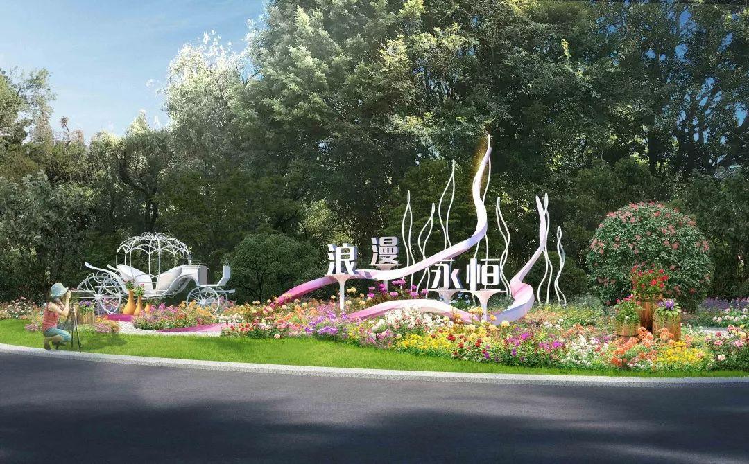 花展主题景点“浪漫永恒”,面积为211平方米,背靠浓密的大型阔叶乔木,以抽象和写实相结合的手法,浪漫布置白色马车、木制酒桶、陶艺花罐、梦幻纱巾、白色火焰以及艺术花境,营造出“浪漫永恒”主题景观。