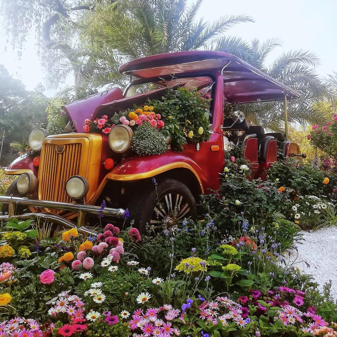 椰树下、砾石旁,随意停放怀旧的老爷车,缀满鲜花,结合花境,形成自然质朴的浪漫情愫。