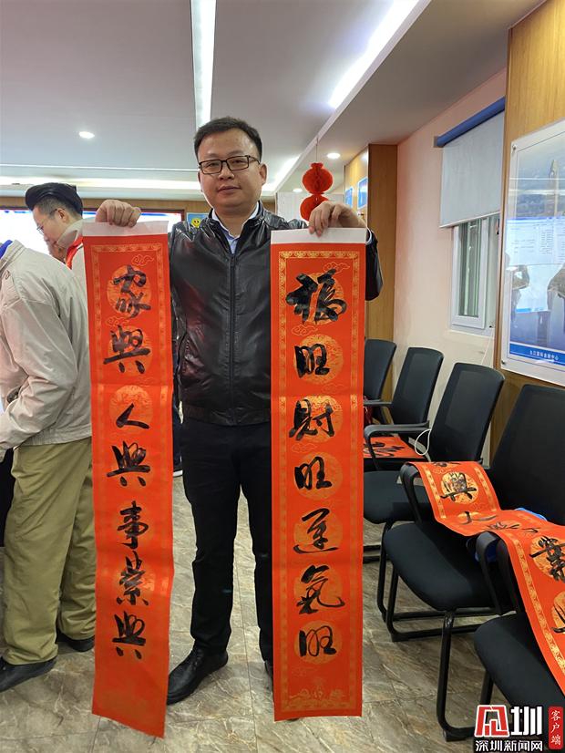 见圳客户端·深圳新闻网2020年1月19日讯(见圳客户端·深圳新闻网记者 潘润华 通讯员 樊星)“心情很激动!”“感谢你们送的春联!”“很喜欢!”一位位工友拿着喜庆的春联,脸上乐开了花。