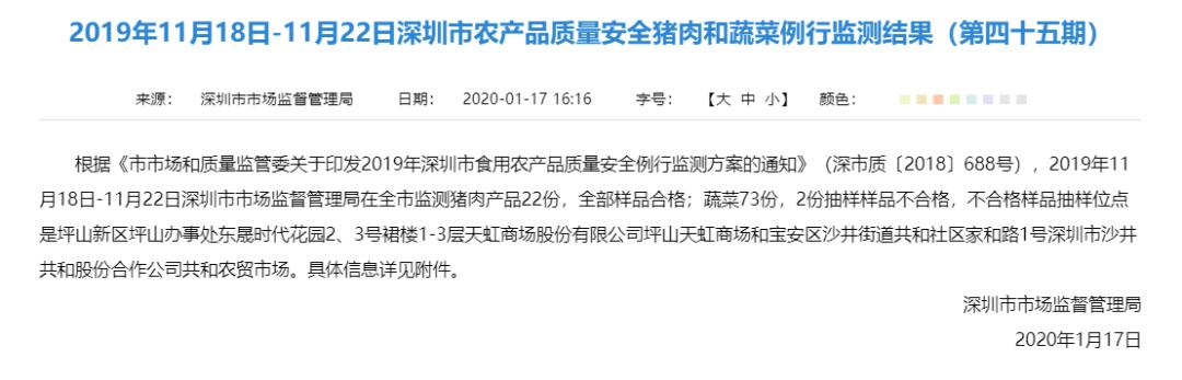 可在本号对话框回复“2019食用农产品抽检第四十五期”获得官网链接下载详细的信息表格~