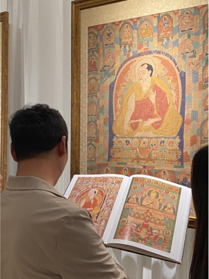 “本次展出的唐卡作品,整体质量可以用‘精湛’这个词来形容。展出的作品级别很高,工艺和艺术表现形式都特别好。”次仁占堆老师在见到展品后,兴奋地说。