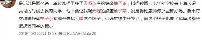 不少网友发现超市、商店下架天喔招牌饮品蜂蜜柚子茶后,纷纷表示喝了这么多年,突然发现没得卖之后,有种莫名的怀念。