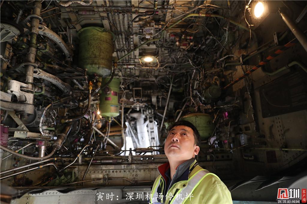 早上4点50分,深圳航空工程师张亮对客机起落架舱进行例行检查。春运期间的张亮最忙一天要完成12—13架次的飞机检修,一架飞机的检修时间需要40—60分钟,年夜饭往往是和同事们一起吃的。