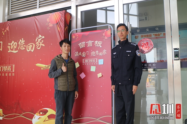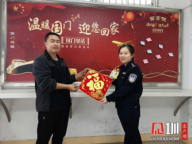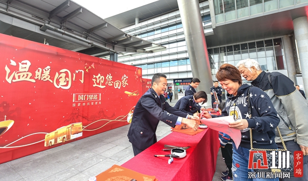 见圳客户端·深圳新闻网2020年1月22日讯(见圳客户端、深圳新闻网 记者 张玲 通讯员 刘姝梦)巍巍国门彰显大国风范,涓涓暖流展现为民情怀。不辞风雪的归乡路上,国门——就是您的第一道家门。根据国家移民管理局统一部署,2020年1月17日至2月1日,深圳边检总站积极开展“温暖国门迎您回家”主题活动,在各口岸出入境现场设置“国门驿站”,摆放“国门同框”合影墙、“家国情怀”留言板,点缀体现中国年的传统文化元素表达祝愿,着力提升广大出入境人员特别是归国返乡人员的获得感、幸福感和归属感,各口岸沉浸在浓浓的年味里。
