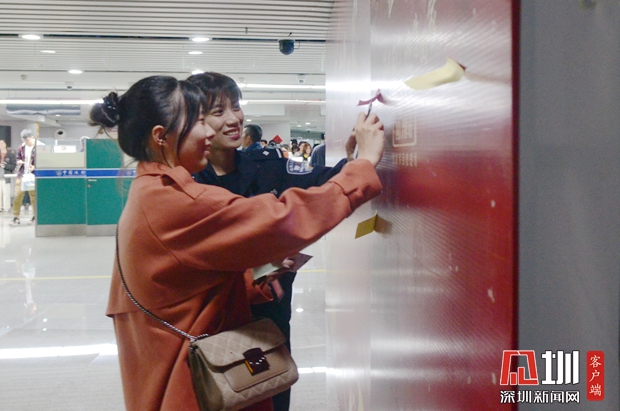 大铲湾边检站设置的家国情怀留言板成为打卡留念点。