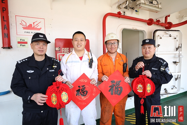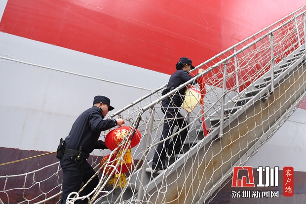盐田边检站登轮送春联、灯笼,将中国年送上国际船舶。
