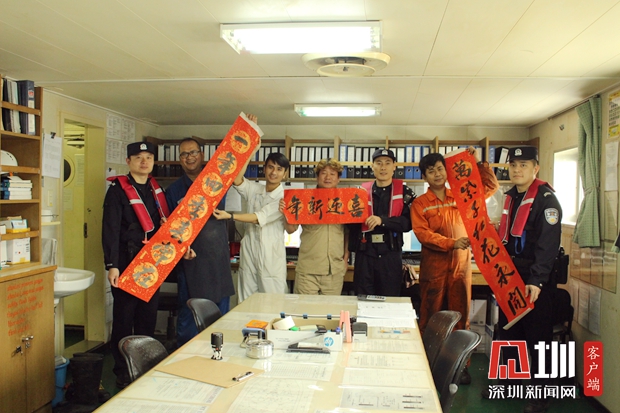 “新年好,祝你新春快乐!”1月19日,汕尾边检站民警带着中国结、对联登上候检船舶,为即将远航印度尼西亚的22名船员致以新春祝福,并与船员一起布置春节装饰品。