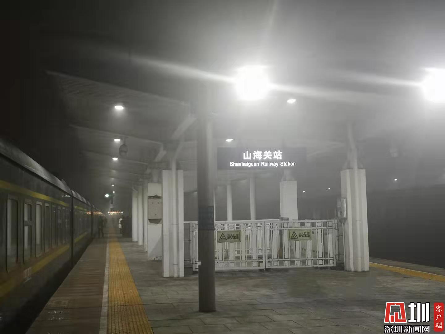 第二天夜晚,11点21分,我到山海关啦!!!!激动的跑到外面拍一张照片,是熟悉的味道,东北味!一出门刮着脸疼的味!下一站驶入我大辽宁!