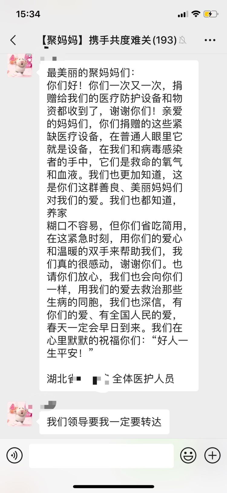 入群的人数飞速增长,很快已接近200人,她们中九成是深圳市民,很多都是像Miya一样的妈妈。有的人进来就转钱,还有人一次就拿出数千元,这让Miya既感动,又有压力,“如何把这笔钱用好,采购哪些物资,怎样送到医院,账目要清晰透明,都是需要考虑”。第二天是大年初一,一大早Miya就把一份行动方案发到了群里,她和几位热心妈妈组成采购小组,负责购买物品。朋友们打过来的钱,每笔记录,并定时在群里公布使用情况。