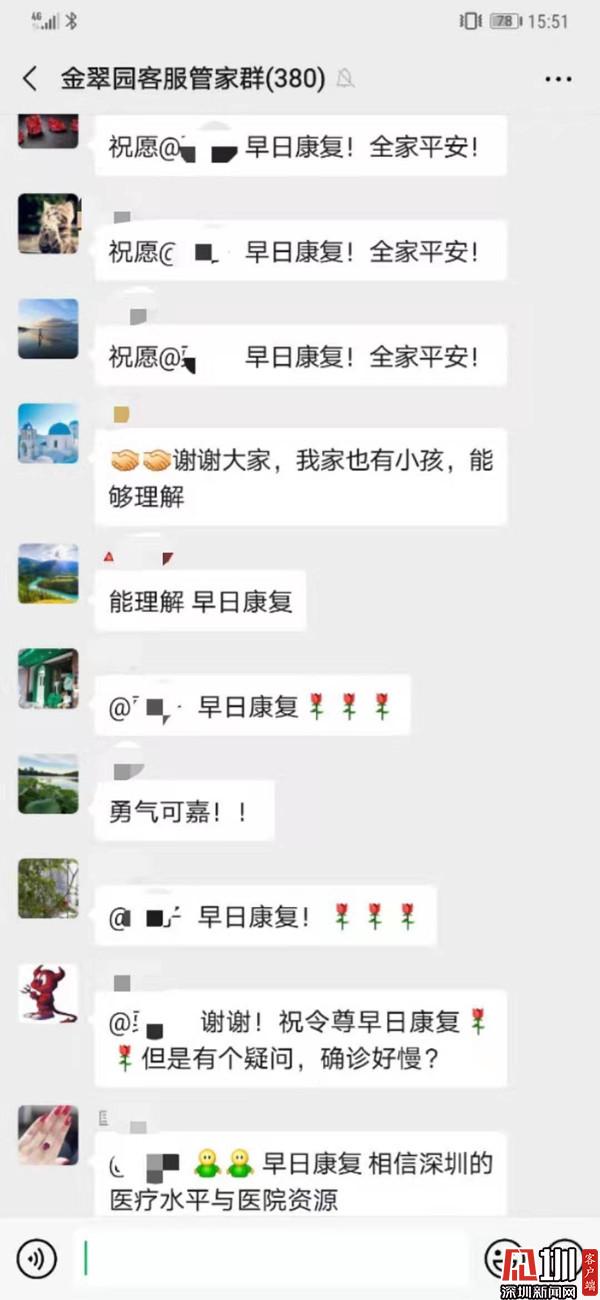 业主纷纷鼓励确诊患者家属并祝其家人早日康复。