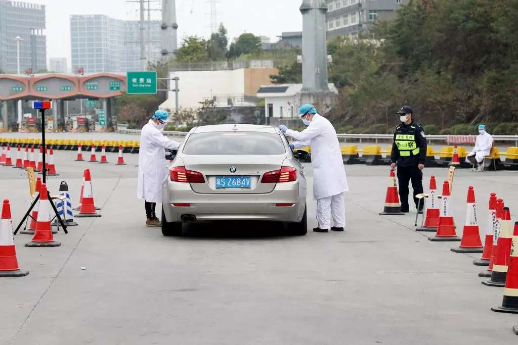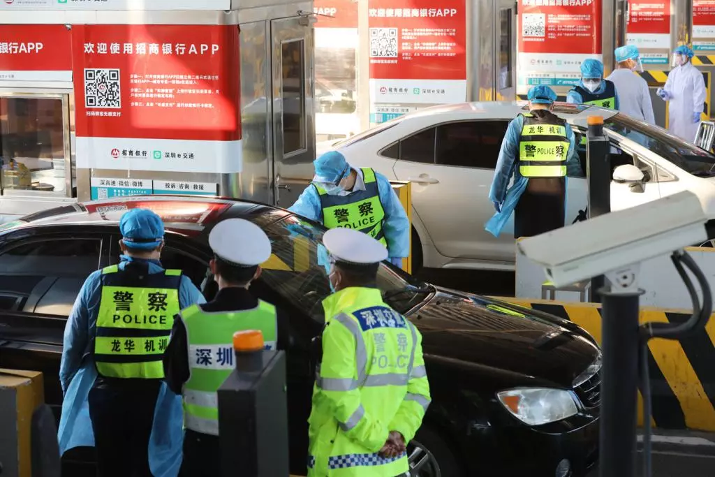 2月2日中午,深晚记者来到梅观高速观澜收费站,发现这里开通了4条车道供车辆通行,现场有超过20名民警、医务人员检测入深车辆司乘人员的体温。