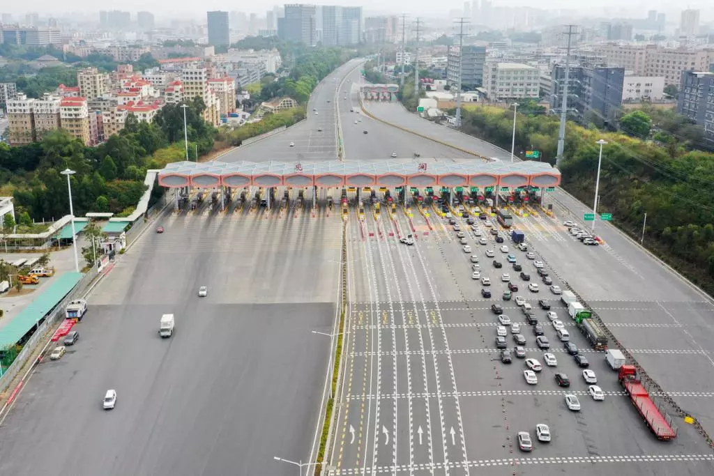 梅观高速观澜收费站,入深方向的车辆排队依次接受检查。