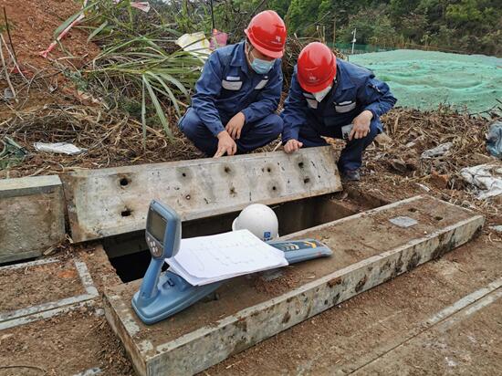 供电人员为市第三人民医院二期工程临时院区建设勘察供电线路(林泽彬摄)