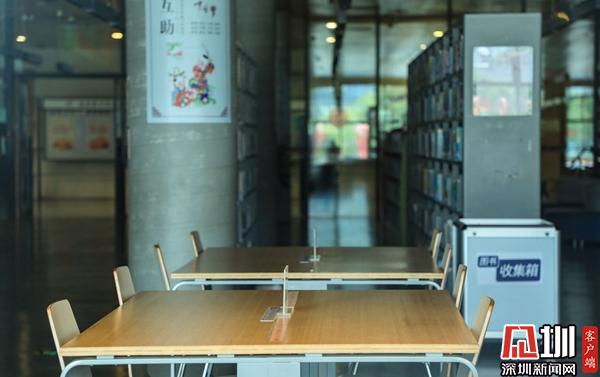 宝安图书馆:透过玻璃窗往里看,馆内空荡荡的场景与往日形成鲜明对比。