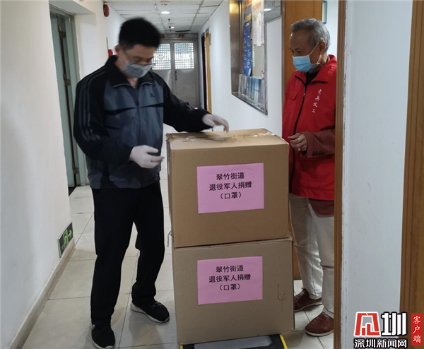 2月6日上午,一批价值2万多元的口罩送到深圳市罗湖区翠竹街道办事处,原来,这是退役军人代表林贞辉、邹强杰送来的防护物资。“在当前防护物资紧缺的情况下,感谢你们对街道防疫一线工作的援助和支持,退役军人‘退伍不褪色’的精神令人敬佩。”街道党工委书记袁亮向他们表达感谢。