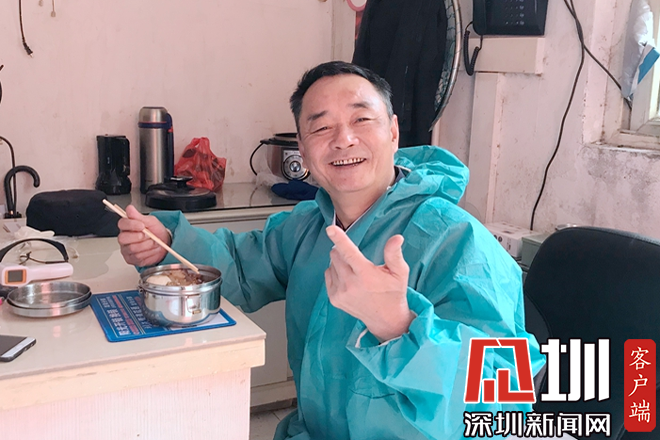 廖师傅说,疫情期间小区居民出门的少了,大多数都是一家子派一个人下楼买菜,自己工作量也还好。自己中午在岗位上吃,早晚在家吃,工作生活都比较正常。“在一线工作的那些人很辛苦,你们也很辛苦啊!”对着镜头,廖师傅还笑着伸出手指,作了个独创的“加油”姿势。(见圳客户端、深圳新闻网记者李云云)