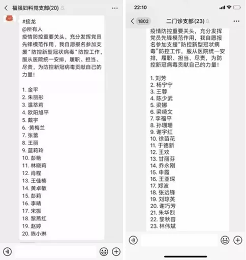 近日,在深圳市妇幼保健院的工作群里,全院党员干部主动请缨,通过自愿报名的方式,申请加入到新型冠状病毒的防控前线。