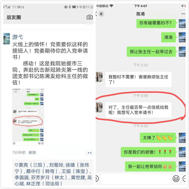 奔赴抗击新冠肺炎一线的深圳市妇幼保健院团支书陈浠发给科主任的信息