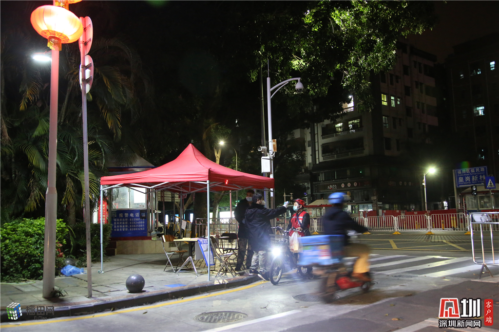 97年出生的胡规负责皇岗村的南岗亭1年多了,“附近居民都喜欢来皇岗村吃宵夜,热闹的时候有好几千人,现在每天都不足百人。人虽少了,但是安保工作并没有因此松懈下来,现在最重要的是防疫”。胡归告诉记者,一次晚上值班站岗给进出的居民监测体温,一位阿姨从旁边经过,特地走过来给我鞠了一躬。当时心里特别暖,觉得自己的劳动获得了别人的尊重。”