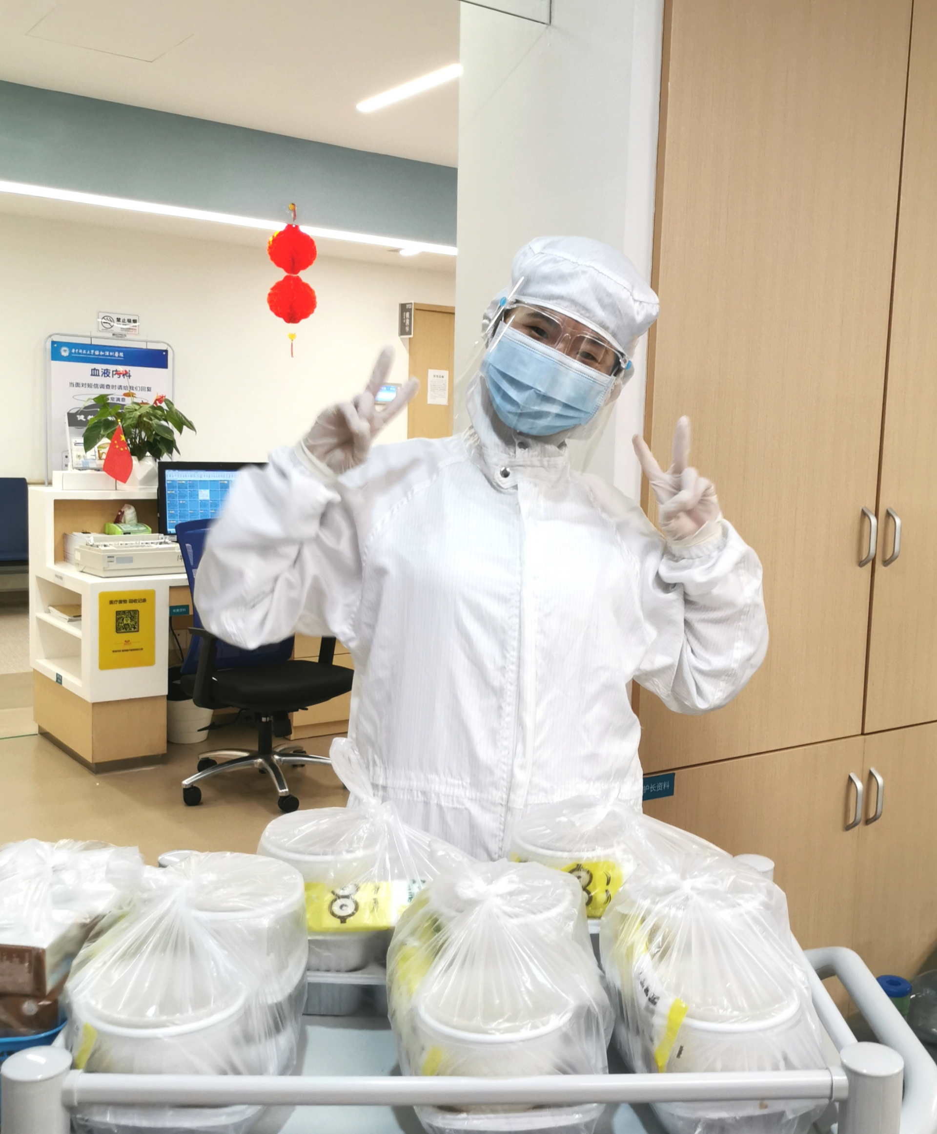 据了解,从1月中旬开始,协和深圳医院很多坚守一线的医护人员已经一个月没有休息了,他们日夜奋战,已经忘了今夕是何夕,很久没有与家人团聚了。一线医护人员经常要加班加点,为了让他们不饿肚子,医院膳食科也全力保障餐饮的供给。