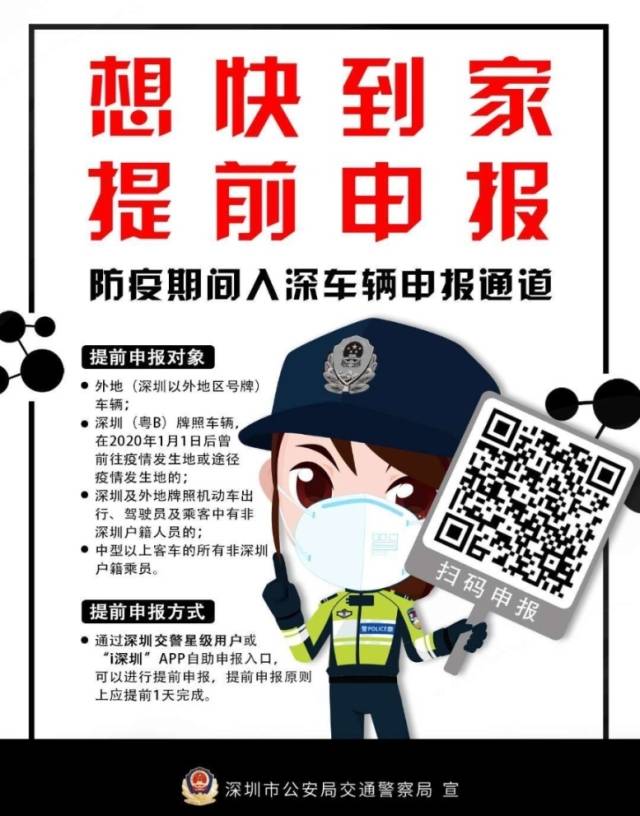 深圳交警提示,预计返深车流将逐渐增大,为了更快速的通过检疫点,建议即将返深的车主和广大市民提前通过网上进行申报。
