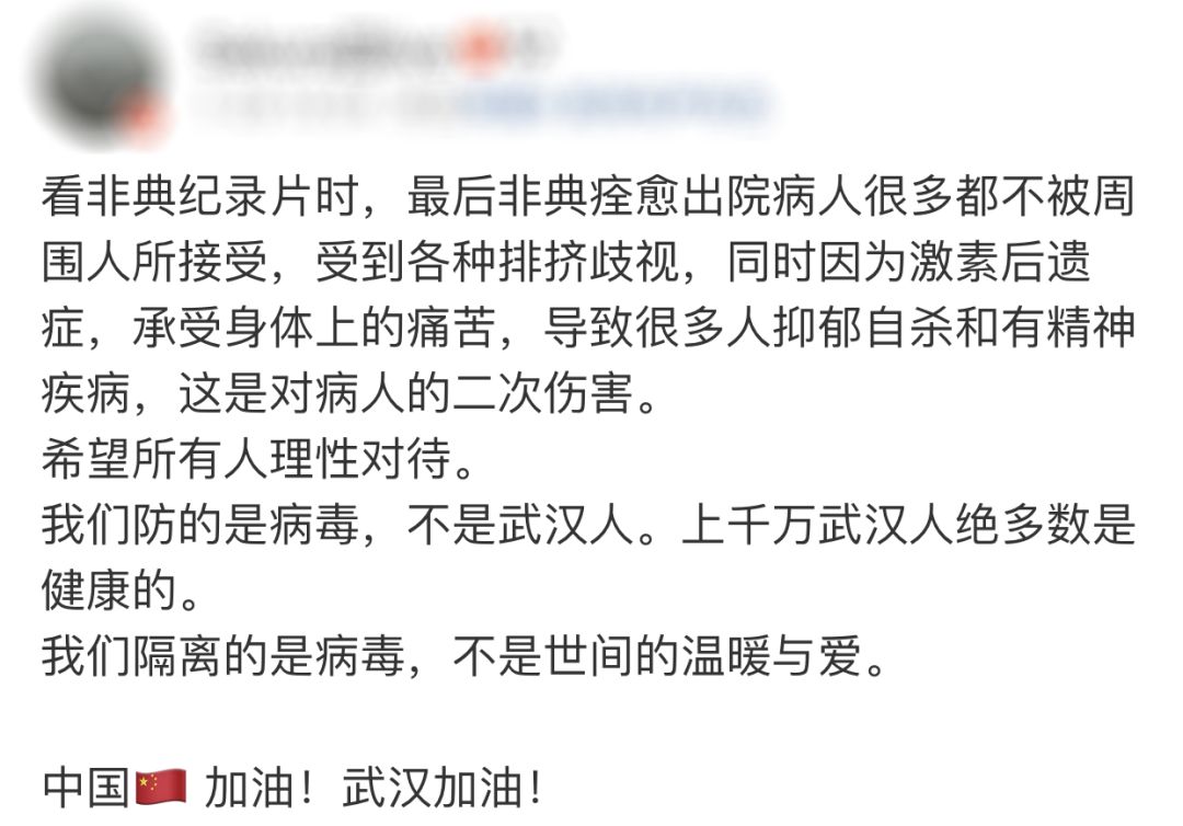 出院者身上的病毒已经被清除,身体已经康复,但心灵上的创伤却未抚平。