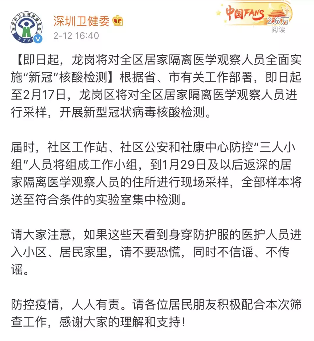 彻底“排雷”!深圳免费为所有居家隔离者检测“新冠”病毒核酸