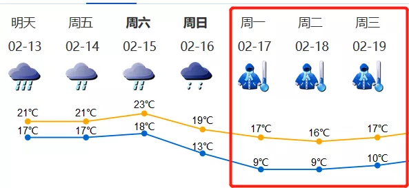 13-15日日温差小,最低气温17-18℃,最高气温21-23℃;