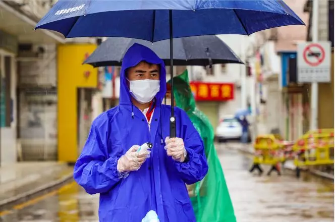 除了他们,还有很多人也冒雨奋战在抗疫第一线:防控检疫员、社区网格员、义工、快递小哥等等
