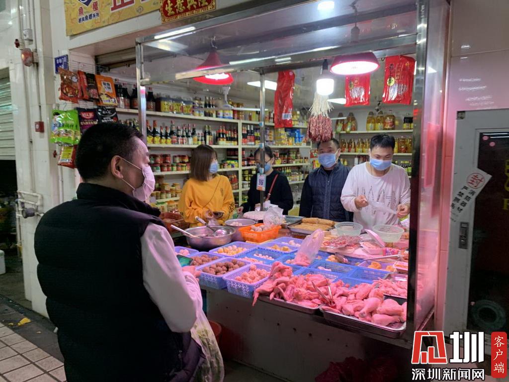 福田区新洲市场,市民戴着口罩出街买菜。