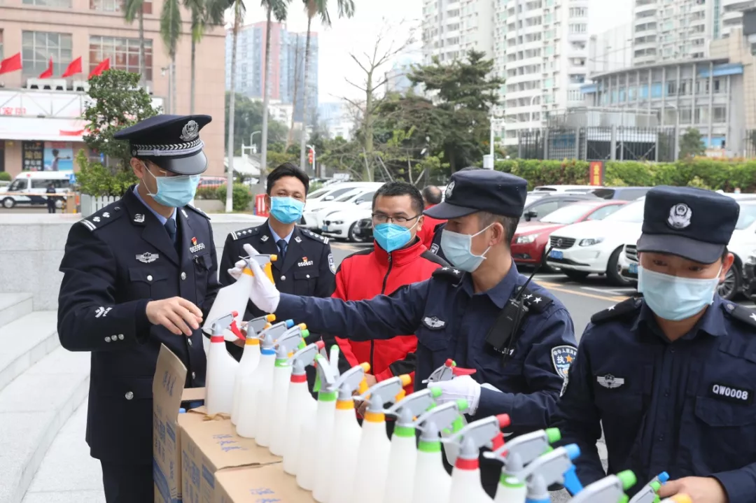 当天16时许,爱心企业代表肖先生带着50桶20公斤消毒液、480瓶消毒酒精、20个喷壶来到了福田分局,捐赠给了福田警方。福田分局党委委员、政治处主任桂礼强代表分局接收捐赠抗疫物资,并对爱心企业表示感谢。