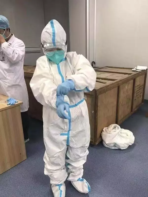 即便戴着口罩,还是能从她的语气中听到洋溢着的幸福感。刷过医院医生专有的门禁卡,袁晓珊进入老公的办公区域。她老公叫黄茗勇,是深圳市第三人民医院放射科技师。见到他时,1米7左右的黄茗勇身上穿着蓝色医用防护服,脸上戴着白色医用口罩。“这就是我老公。”袁晓珊一眼就认出来了。