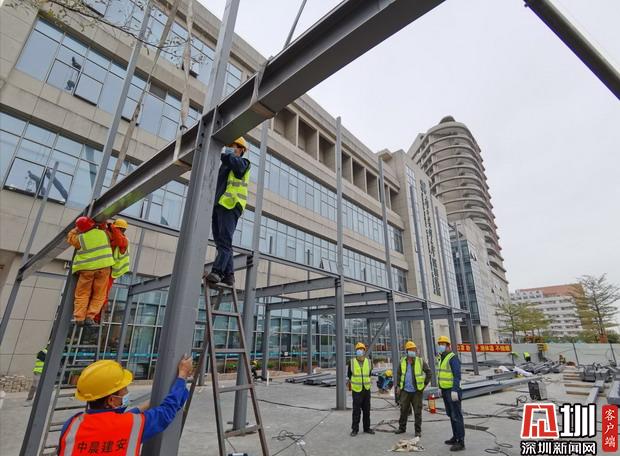 见圳客户端·深圳新闻网2020年2月15日讯 (见圳客户端、深圳新闻网记者 刘梦婷 通讯员 王小欢)为落实深圳市政府疫情防疫工作部署,应对返工潮可能带来的疫情防控挑战,保障人民生命健康,南方医科大学深圳医院紧急建设新型冠状病毒感染患者收治应急隔离病房,于2月13日完成建筑封顶,预计2月23日完成整体项目,届时将可提供25间隔离病房,其中15间重症病房。