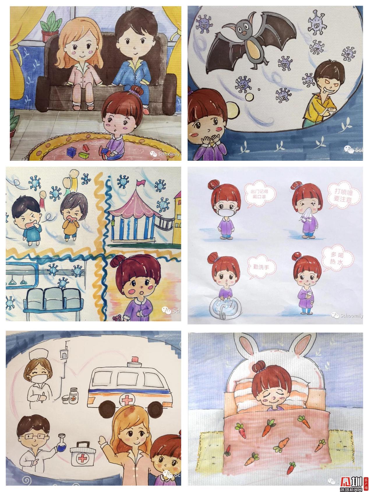 疫情打破了假期的宁静,桃小的队员们纷纷行动起来,录制小视频,向先锋致敬,为武汉加油!学生、家长们也纷纷发挥自己的聪明才智,亲子齐上阵,一(3)班薛然小朋友的家长带着孩子一起绘制防范新冠病毒的绘本,并配音、剪辑、制作成精美的视频,既帮助了身边的同学,又在这个特殊的时刻陪伴和见证了孩子的成长。