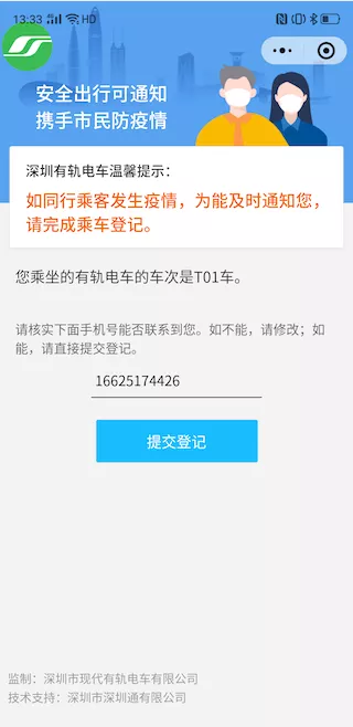 见圳客户端·深圳新闻网2020年2月15日讯 据“深圳市轨道交通”当前,防疫工作仍旧是重中之重,寻找确诊病例乘坐公共交通工具时的同行人是疫情防控的重要一环。为此,深圳有轨电车将于明天(2月16日)上线“电车同乘信息系统”。届时,所有乘客信息将可查询、可追溯,进一步助力疫情防控!