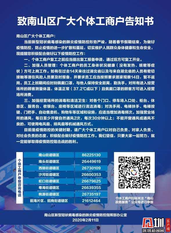 南山区个体工商户复工需要怎么办?看这里,手把手教你!