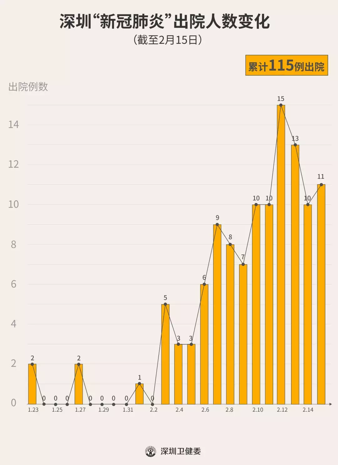 2月15日下午,经专家组会诊,深圳再有11名新型冠状病毒肺炎确诊患者出院,累计达115人。