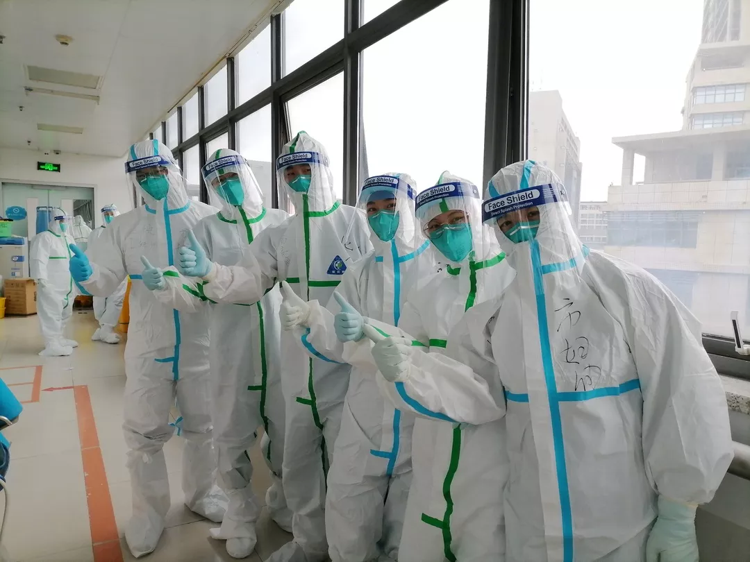 张娟在战“疫”一线和战友合影