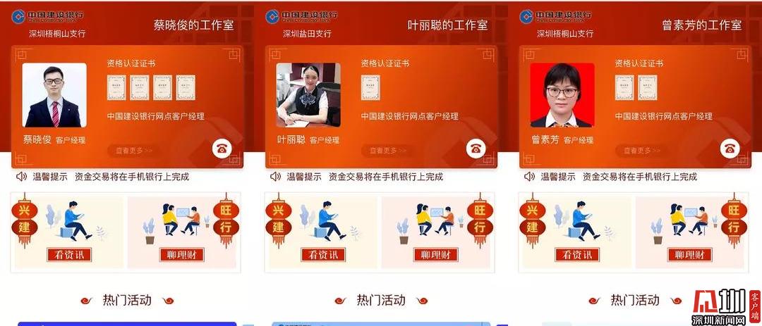 见圳客户端·深圳新闻网2020年2月17日讯(记者姚苑 汤莎 朱琳 江书剑 )营业网点按区域轮流排班、为有需要的客户提供金融服务绿色通道、7*24小时网络在线、客服热线不中断……深圳各大银行有序复工,通过线上线下结合的方式为企业和市民提供金融服务。