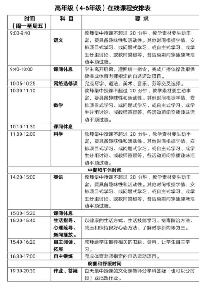 于女士向小编展示了其大女儿学校的在线课程安排表:
