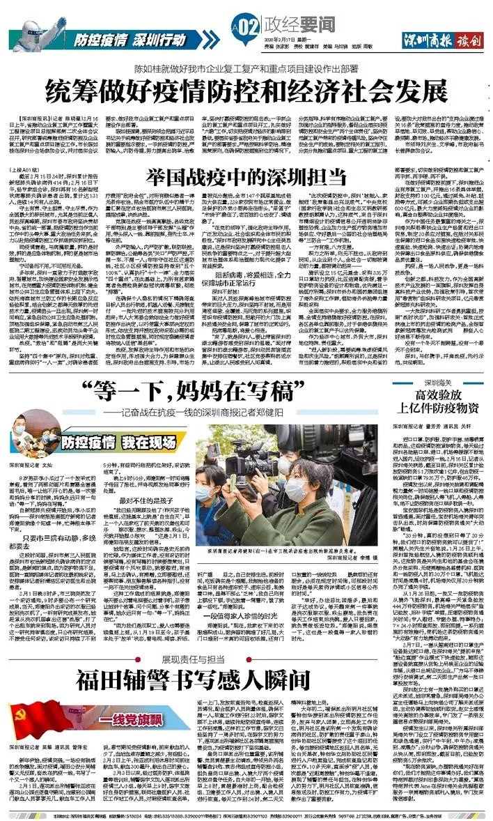 2月3日以来,经过医务防护、体温测量等培训后,辅警陈宇文加入莲花派出所疫情三人小组。每天早上9时,陈宇文做好自身防护措施,联同社康医护人员、社区工作站工作人员,对照疫情核查名单,逐一上门,发放核查告知书,检查返深人员情况,配合医护人员测量体温,确保不漏一人。核查工作进行到22时后,陈宇文顾不上休息,继续张贴防疫宣传单,连续工作到凌晨。这样的工作节奏,陈宇文已经坚持了一周多时间。在陈宇文的努力下,莲花派出所福新社区各项隔离措施完善妥当,为疫情防控打下坚实基础。