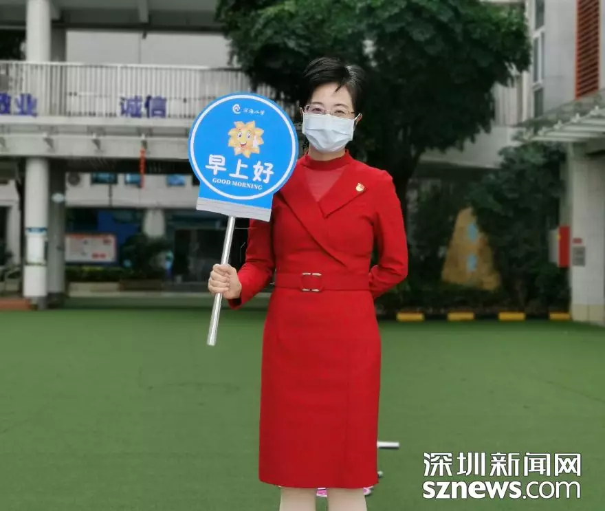 今日的“开学典礼”虽不同往日,校园里空荡荡,没有师生的到来,但宝安区滨海小学的校园门口依旧出现了一个熟悉的身影,她用这种特殊的方式迎接孩子们开学的第一天,“早上好”“你真棒”,这温情的话语是李桃辉校长给每一位师生的问候。